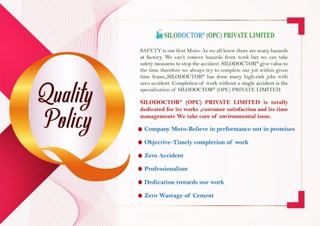 SAFETY is Our First Moto- As we all know there are many hazards at factory. We can’t remove hazards from work but we can take safety measures to stop the accident. SILODOCTOR® give value to the time therefore we always try to complete our job within given time frame,SILODOCTOR® has done many high-risk jobs with zero accident.